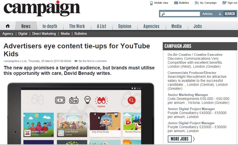 Advertisers eye content tie-ups for YouTube Kids